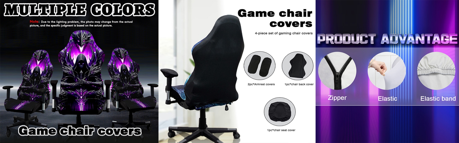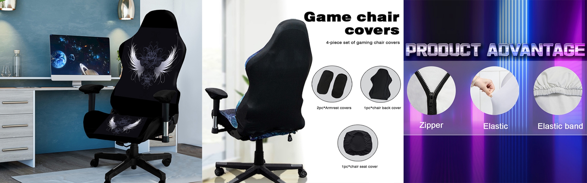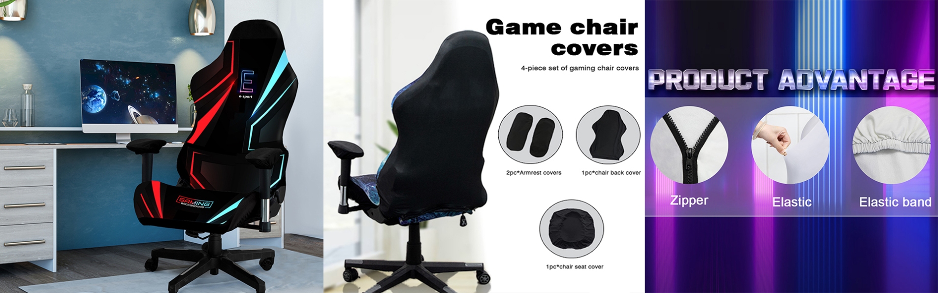 Premium Fabric & Smart Design Fabric Quality Our gaming chair covers are crafted from high-density stretch fabric — typically a polyester-spandex blend that offers durability with just the right amount of give. The material is soft to the touch, breathable for all-day comfort, and resistant to fading and pilling. Complete Protection Unlike generic seat covers, our set includes: Backrest Cover — Protects against dust and scratches Seat Cushion Cover — Shields against spills and stains Armrest Covers (2 pcs) — Prevents wear at high-friction points Secure Fit Design Features include elastic hems that hug the edges of your chair, plus zipper closures on the backrest cover for easy installation and removal. Anti-slip backing keeps the cover firmly in place — no bunching or sliding during intense gaming sessions